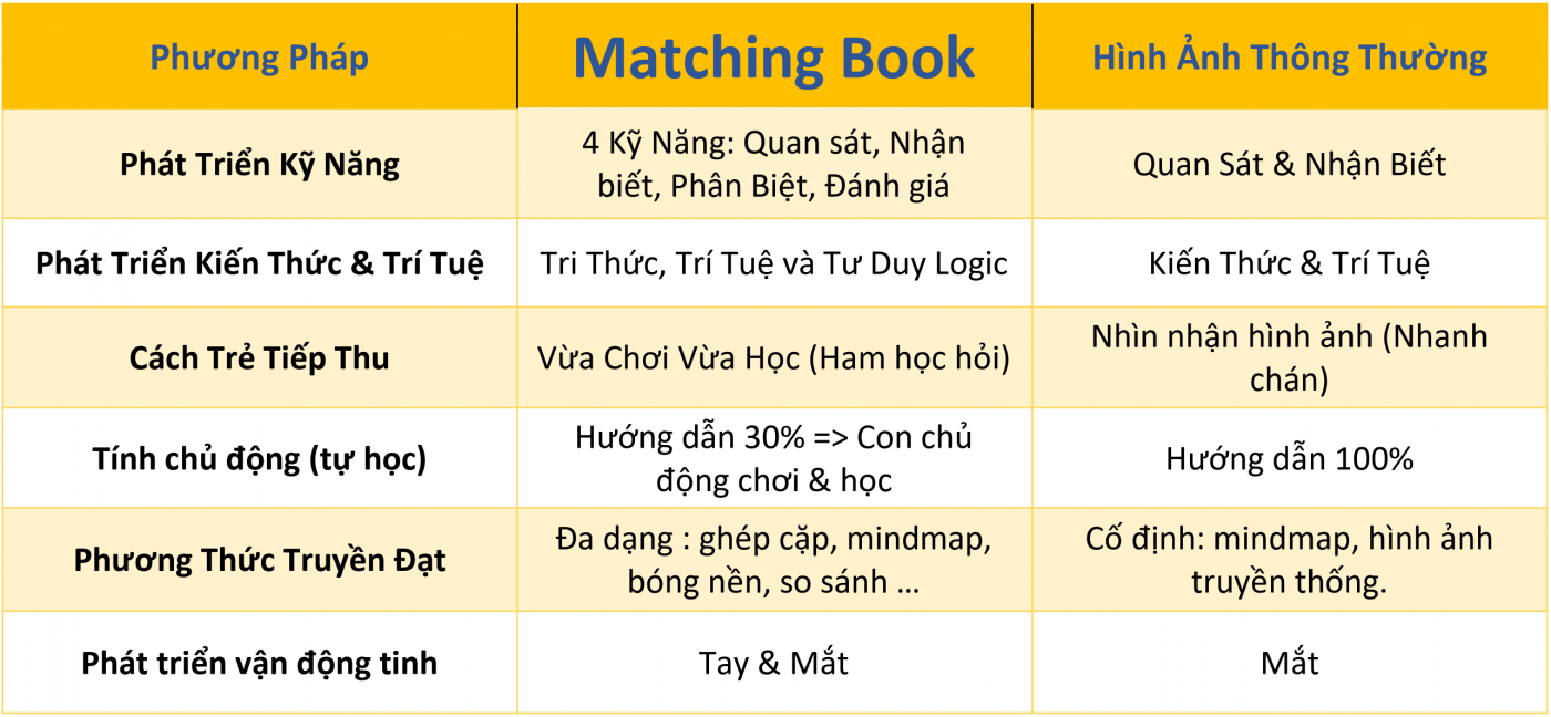 Matching Book/Board là sự kết hợp và tối ưu trong việc sự dụng hình ảnh, âm thanh trong việc giáo dục cho trẻ. Với định hướng chuẩn montessori thì Matching Book/Board là giáo cụ học liệu được sử dụng hiệu quả nhất với Trẻ.